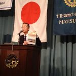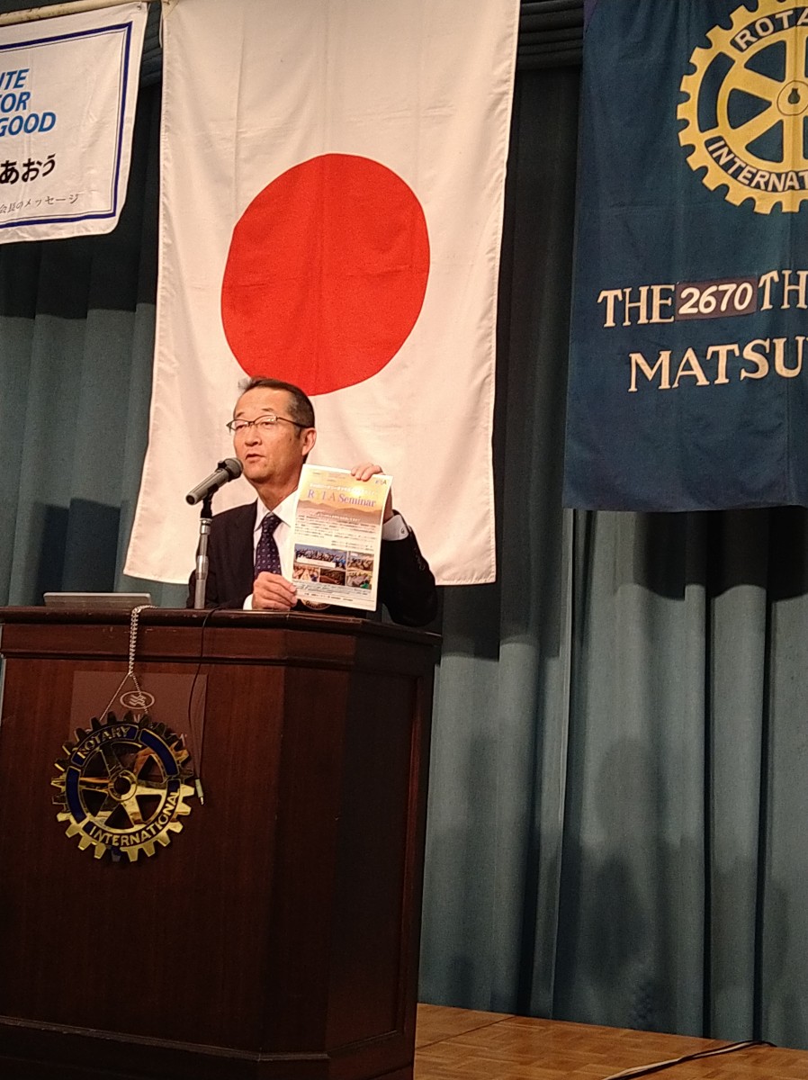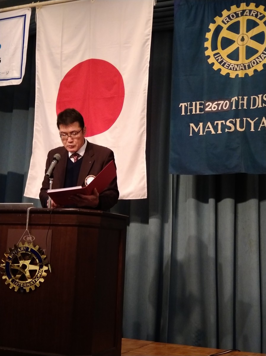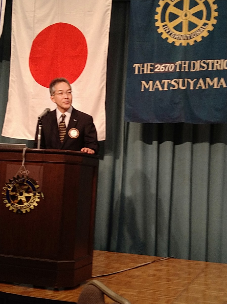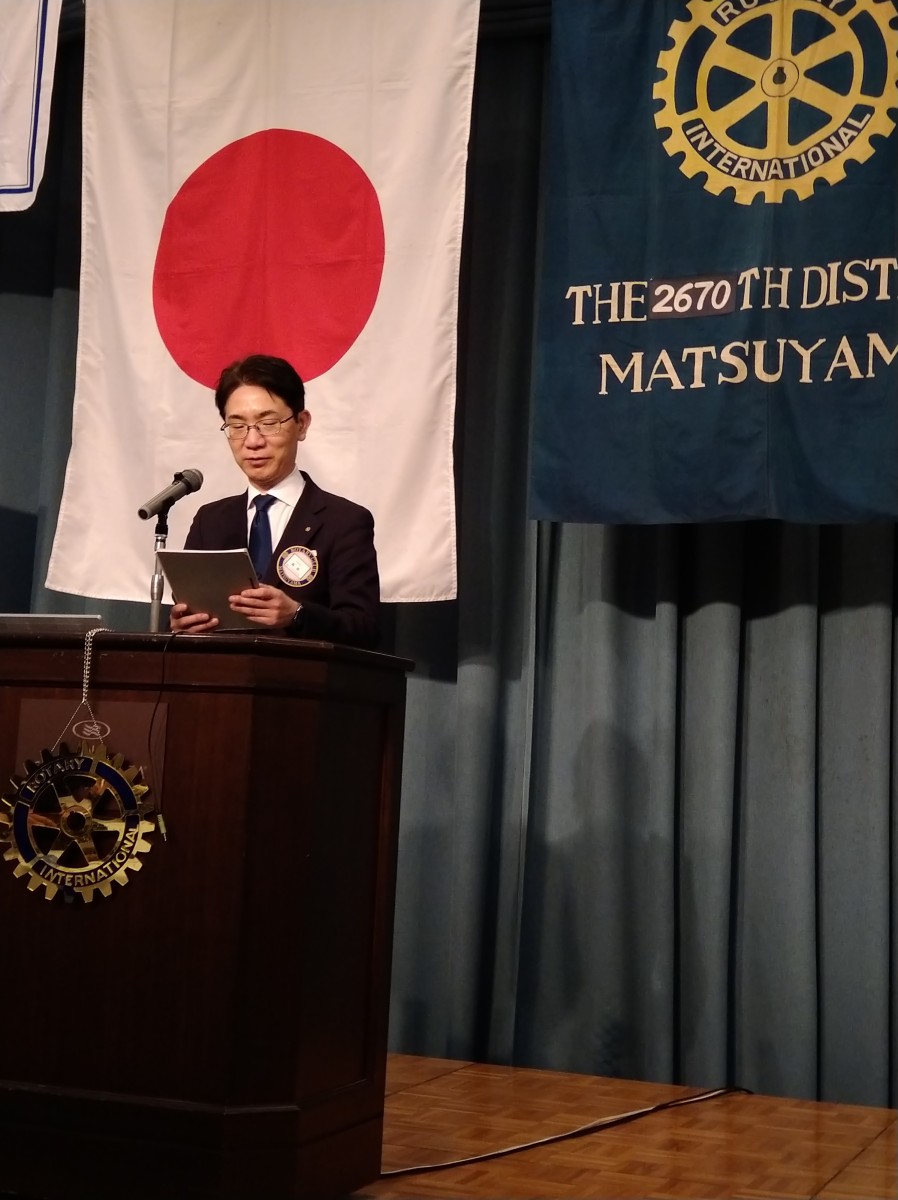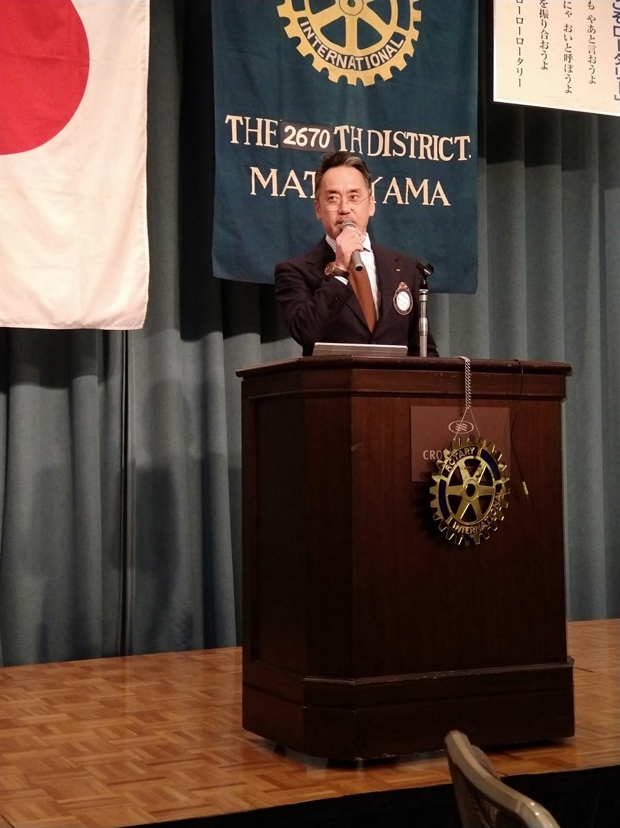 卓話は木和田さんによる「地元のおかげで今がある~鏡餅に愛媛みかんをのせられる日を目指して~」。