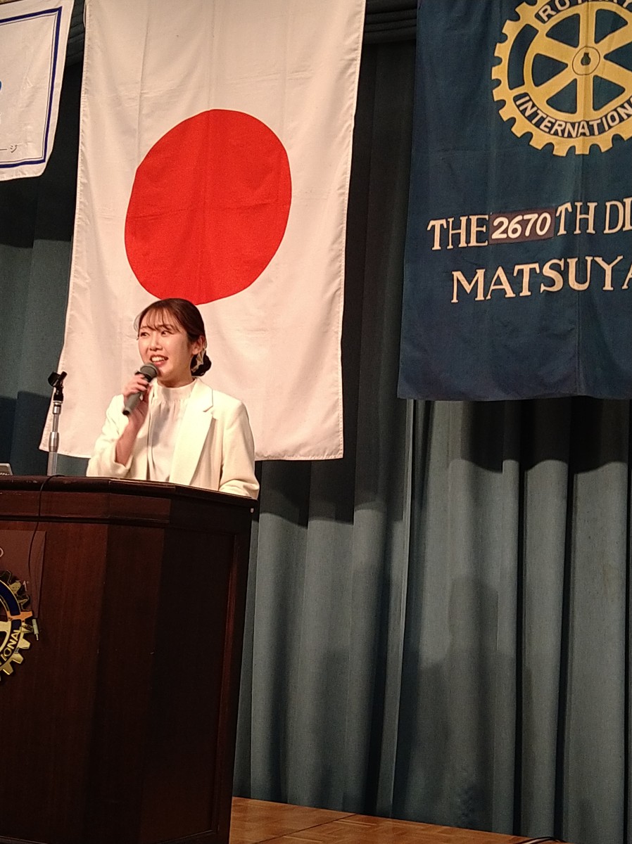 (株)愛媛朝日テレビアナウンサー木和田 優衣さんをゲストに迎え、第3714回例会を開催しました。