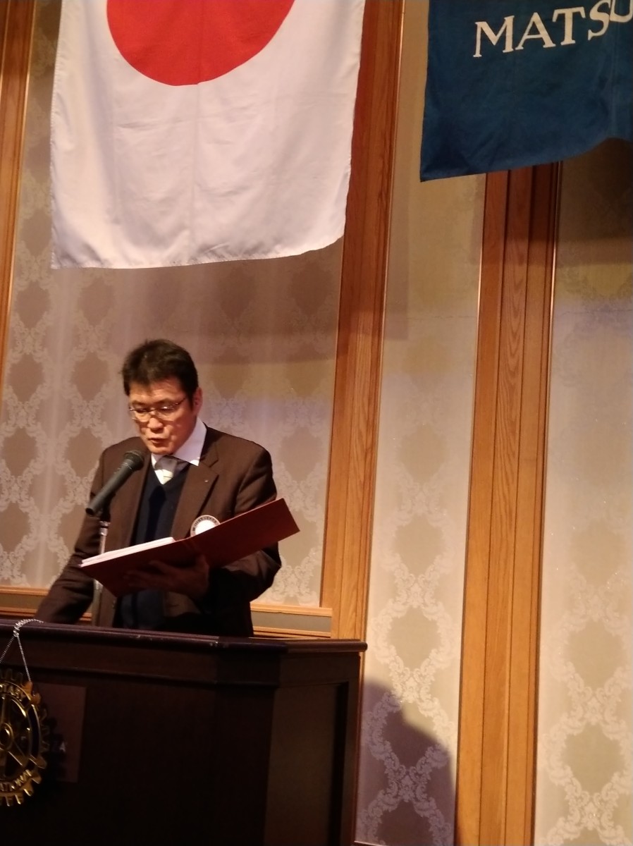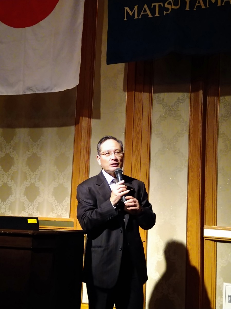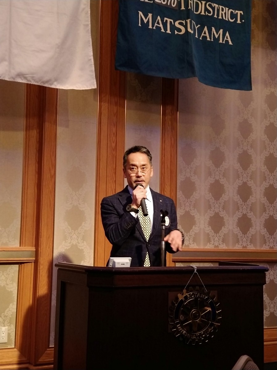 松山市防災危機管理部 災害対策指導監 島瀬 達也さんをゲストに迎え、第3718 回例会を開催しました。