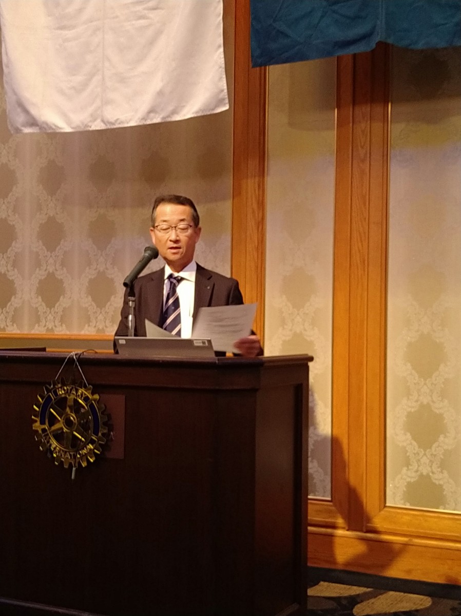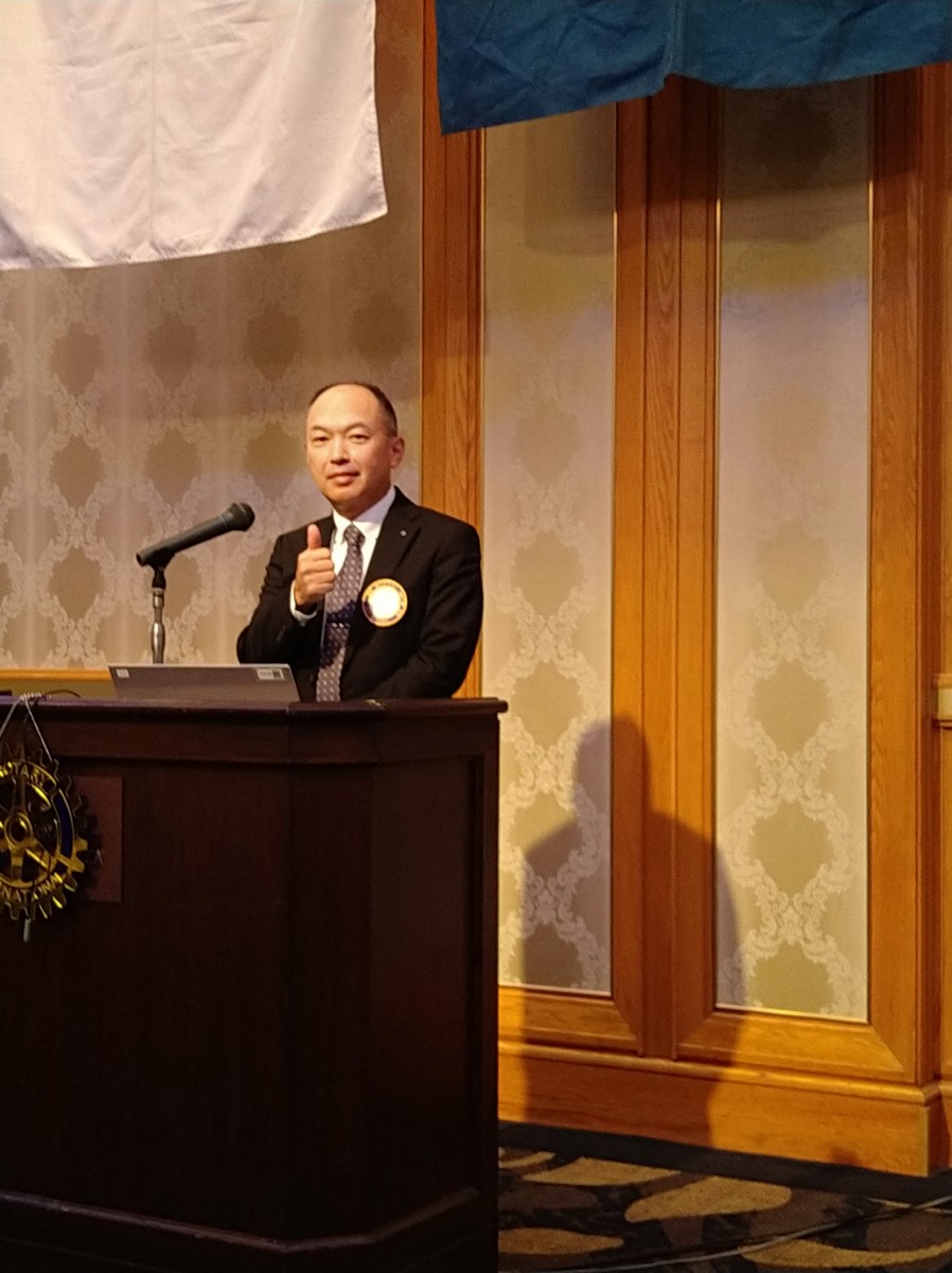 冒頭の自己紹介では学生時代、ロータリークラブの青少年交換プログラムに応募されてブラジルにて一年間過ごされたこと等についてお話いただきました。