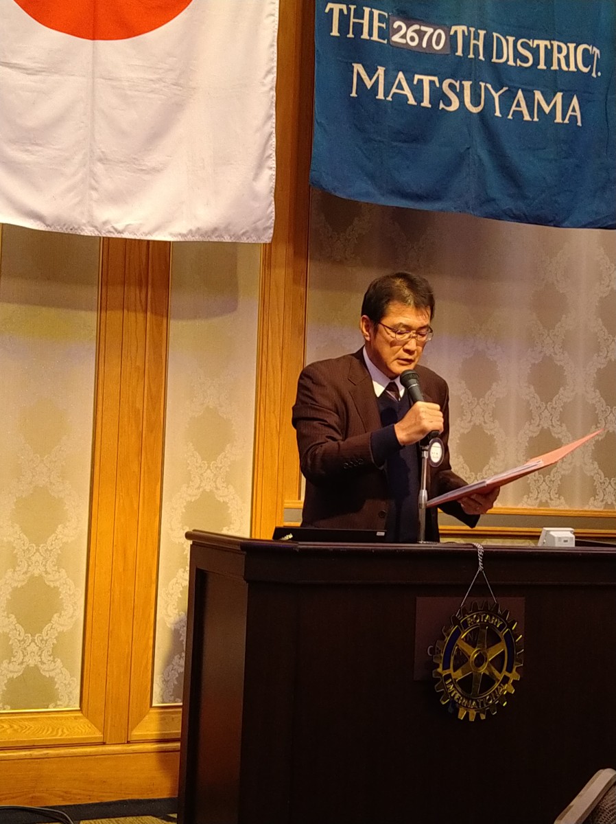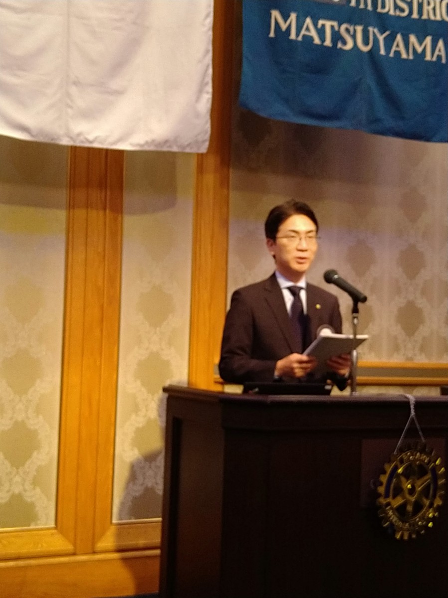 松山ロータリークラブ米山奨学生 金 泰俊さんをゲストに迎え、第3704回例会を開催しました。