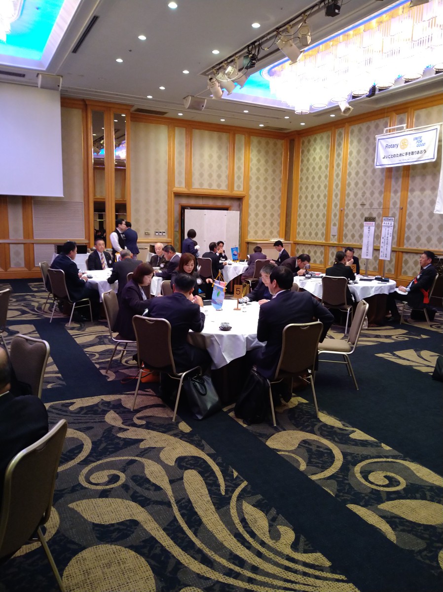書道家 武田 双雲さん、橋本 和弘ガバナー補佐、道後RC 阿部 妙子さん、セレーネアートメディア(株)小松澤 美知子さん、留学生 キム テジュンさんと多くのゲストを迎え、第3700回例会を開催しました。